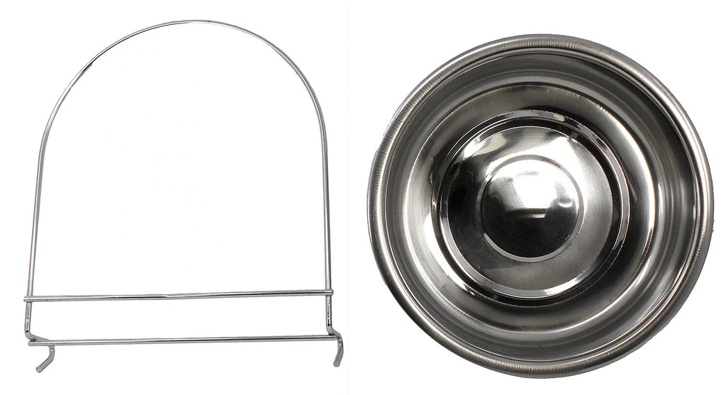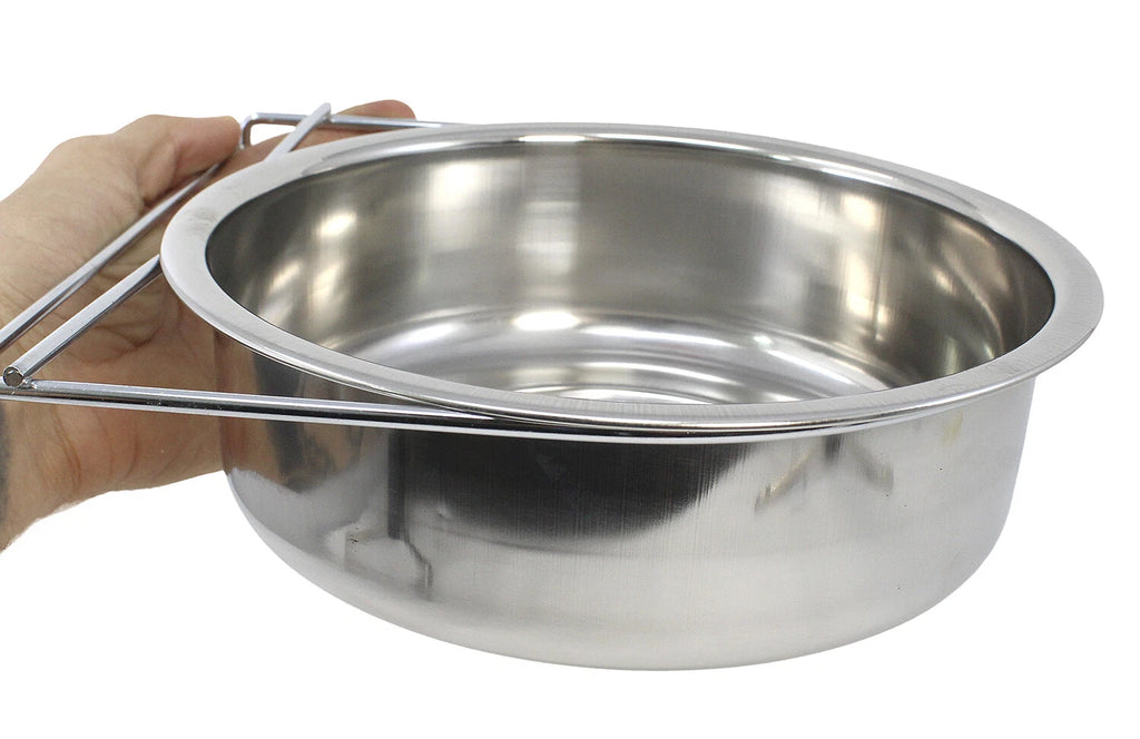 The 3440 96oz Hook Cup from Bonka Bird Toys is an excellent large size stainless steel feeding cup for your large beaked buddies! The 3440 has a sturdy holding hook and great shiny reflective finish that makes it stand out in any cage. The hook hanger has (2) large hooks and a resting bar to sit comfortably wherever you decide to install it in the cage. The hanger has another bar and a large loop to allow the bowl to sit at a level angle. The cup has a large wide lip that sits on top of the metal hoop. Inside of the cup there are some grooves to make it easier for your pet to feed and easier to clean the cup. Its high quality finish will hold up for many feedings and makes it super easy to clean. Its straightforward design makes it perfect for liquid and food. This bird feeding cup is 100% bird safe.