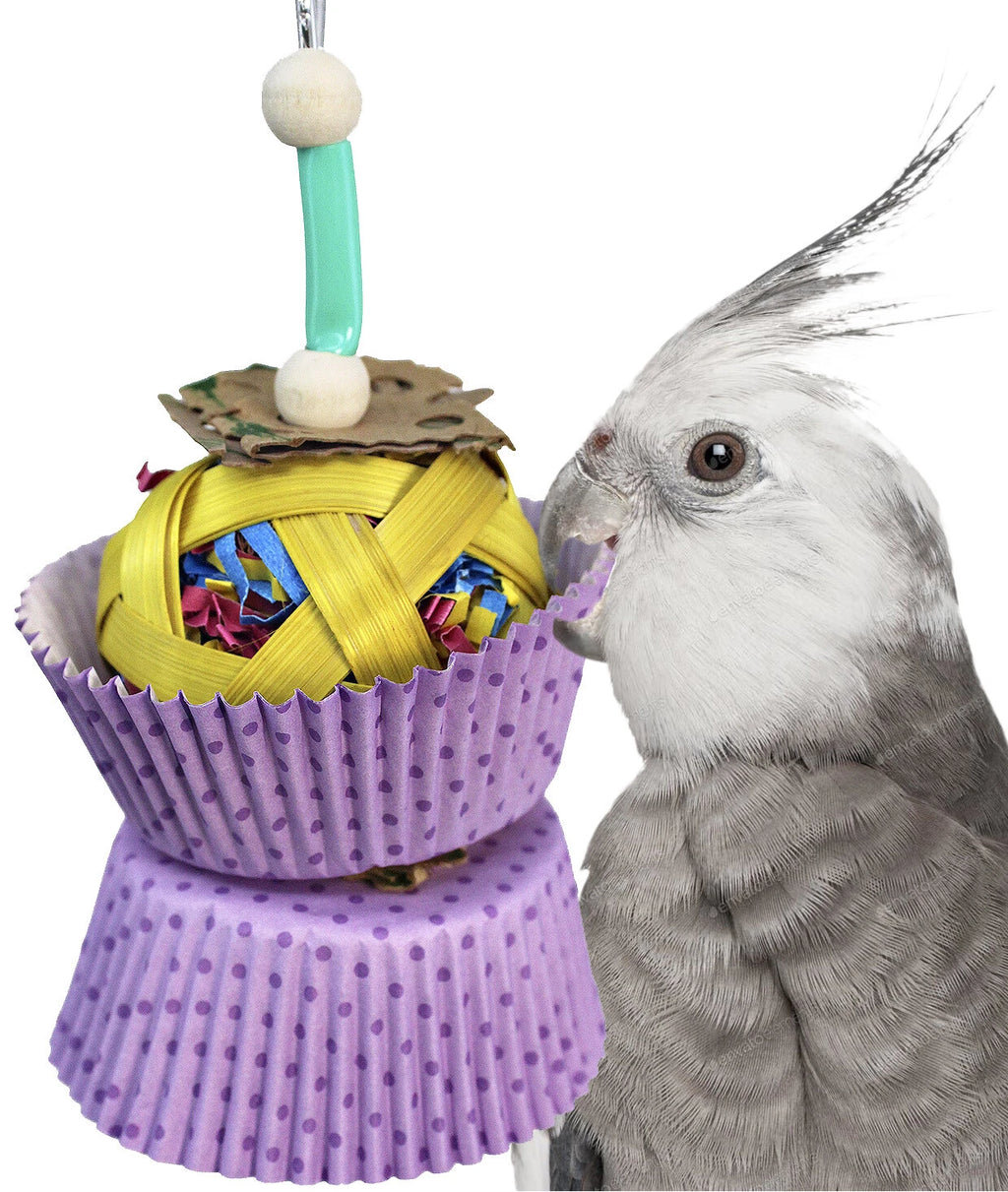 1080 Cane cake is a great toy for those busy beaks, this simple but effective toy will keep your small to medium-sized birds happy. A colorful woven bamboo ball is stuffed with colored crinkly paper and adorned with layers of paper cupcake liners, a super toy that will keep your favorite companion beak busy. It measures approximately 6 inches high by 4 inches wide and comes complete with a quick link for easy cage placement. Comes in assorted colors.