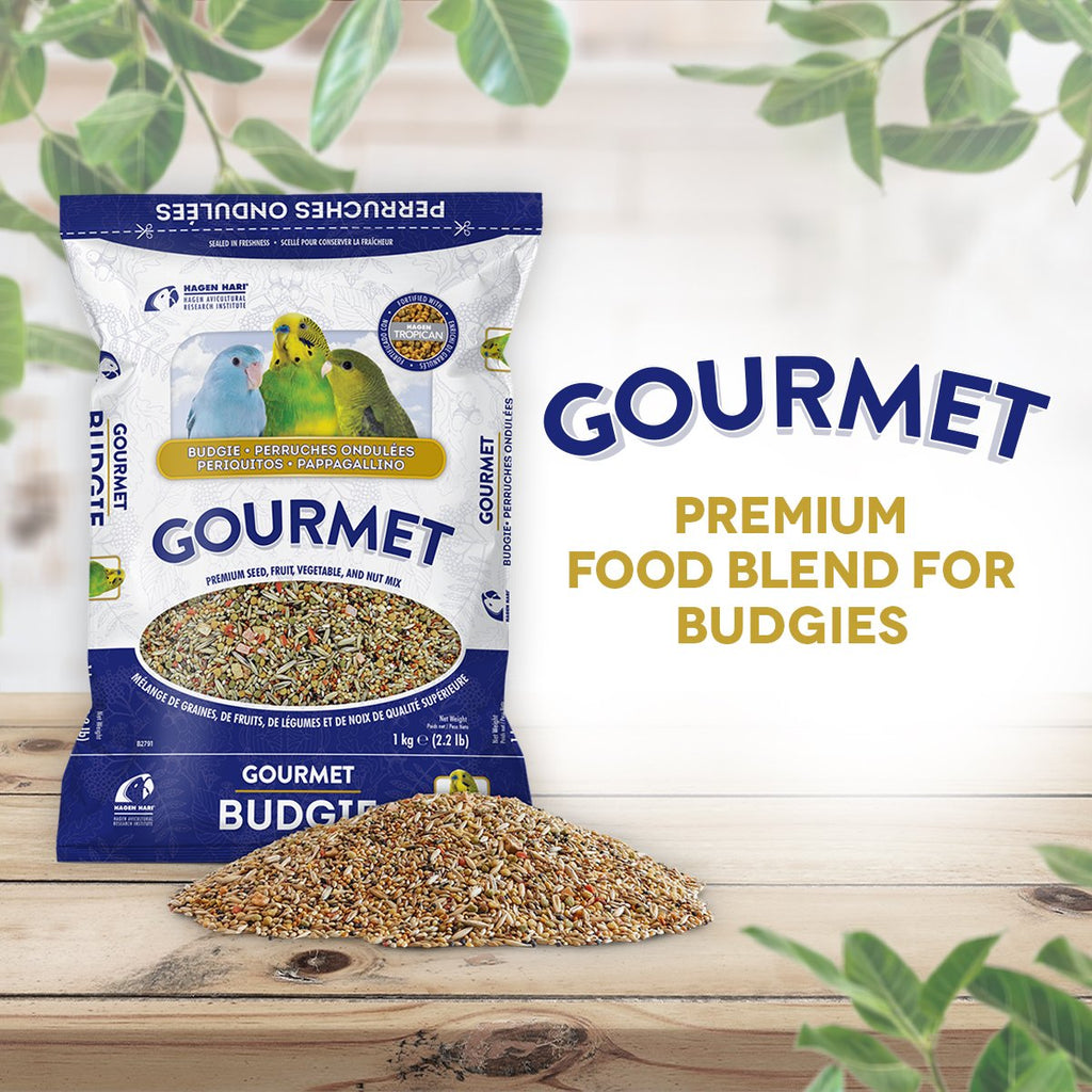 Hagen Gourmet Premium Seed, Fruit, Vegetable, and Nut Mix for Budgies contains only the highest quality seeds, vegetables, and nuts blended in a perfect balance. Specially formulated for the nutritional needs of Budgies, the seeds are carefully selected for high nutrition and taste appeal. Now fortified with Tropican™ Lifetime and enriched with vitamins and minerals to ensure a nutritionally balanced diet for pet birds.