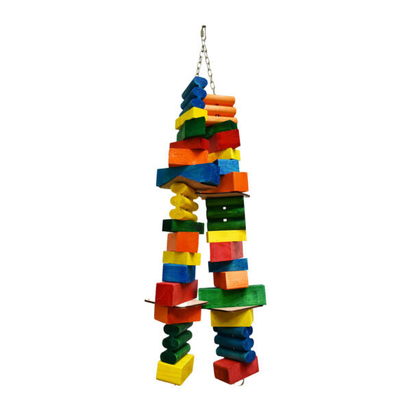 MAMMOTH TOYS ARE DESIGN FOR MEDIUM TO LARGE PARROTS THE LOVES TO DESTROY. MADE OF SOFT WOOD THESES ARE HEAVY DUTY TOYS AT A VERY LOW PRICE. ALL MOUNTED ON NICKEL PLATED CHAIN.