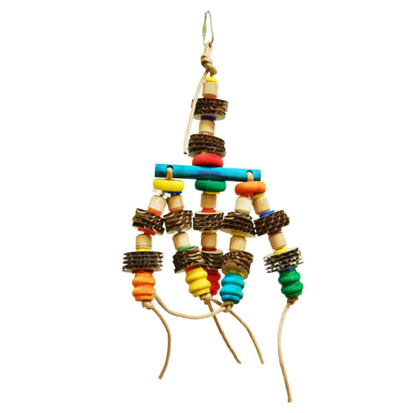 Is an Interesting toy for birds who like to destroy. Several wooden pieces and a small piece of cardboard. Shredder toys help your birds develop skills and help reduce feather pecking in some of your winged friends.