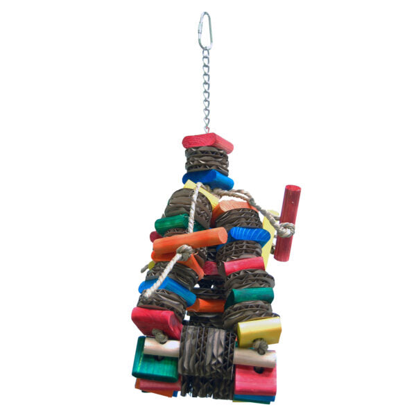 POUFFY SMALLDimensions: 14″X7″X4″Is an interesting toy for birds who like to destroy. Several cardboard discs (132 pcs) that they will love to chew on.Made of pine wood