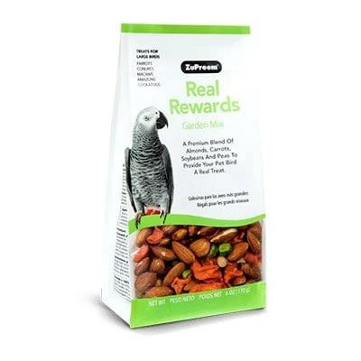 Real Rewards Garden Mix Treats for Large Birds offers a delicious mix of almonds, carrots, soybeans and peas to provide reward occasions for those special moments you share with your bird.